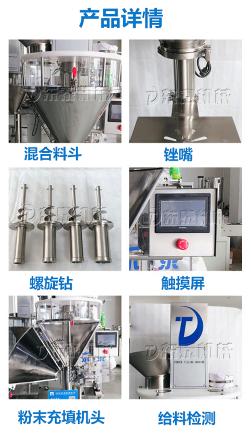 2、粉劑包裝機適合袋類、罐類、瓶類等各種包裝容器粉劑定量包裝。