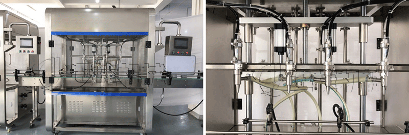 四頭充氮機和四頭充油機。 瓶子可以自動充滿氮氣以達到保鮮效果。 自動流量計式灌裝機保證了灌裝速度和精度。 獨立芯設計的防滴灌裝頭使油脂包裝車間免受二次污染,更加清潔。