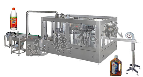 為生產工藝服務的原則。先應根據灌裝物料的性質(粘度、起泡性、揮發性、含氣性等)選擇適宜的灌裝機,以滿足生產工藝要求。例如對于芳香較濃的酒液,為避免揮發性芳香物質受到損失,一般應采用容杯式或常壓灌裝機;對于果汁類料液,為了減少與空氣接觸,保證產品質量,一般應采用真空加汁類灌裝機。其次,應使灌裝機的生產能力和前后工序的加工、包裝機械的生產能力相匹配。